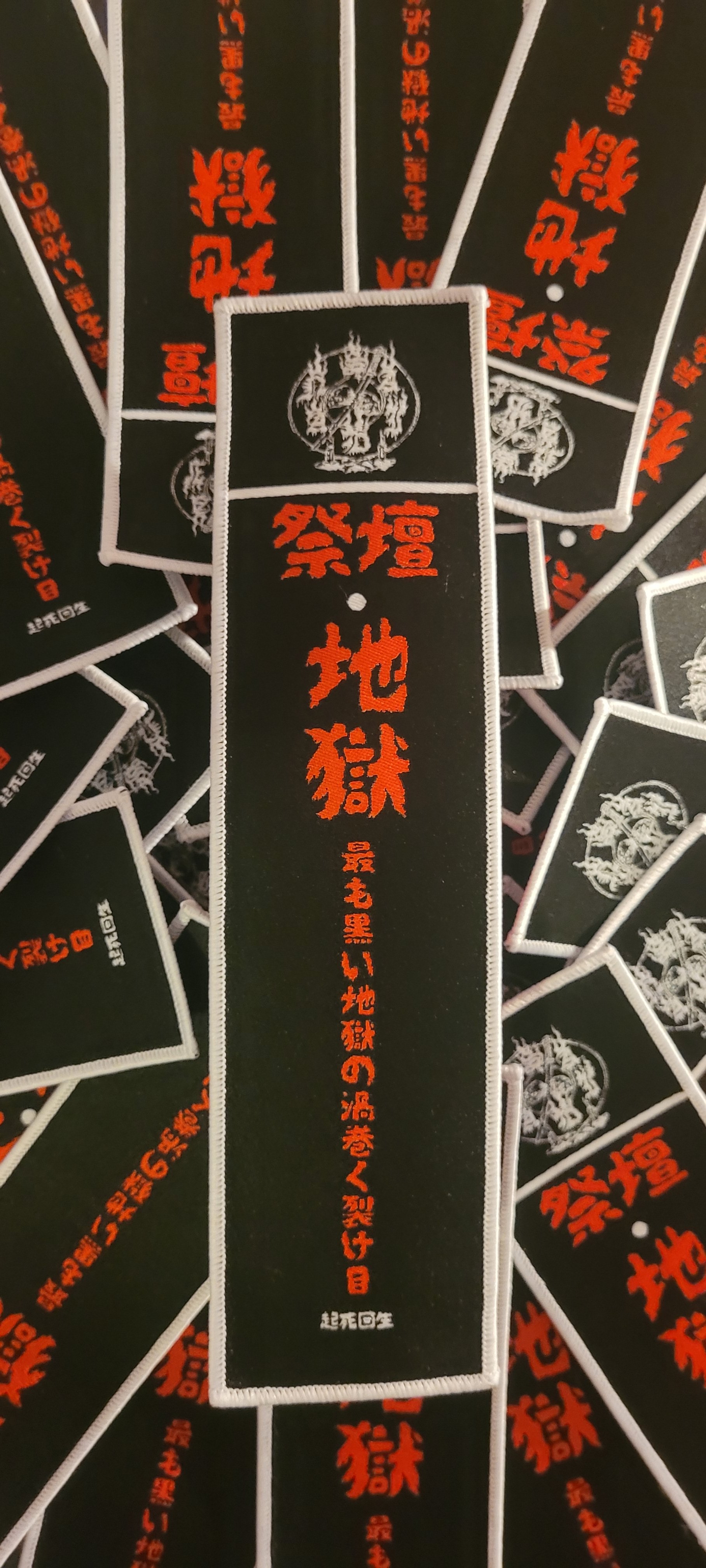 This patch features Saidans first logo, and this design is taken directly off of the obi-strip for a repressing of Jigoku: Spiraling Chasms of the Blackest Hell.
