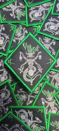 Viölent Hëx roars back onto your vest at the speed of Satan with an all new demo titled Black Mass At The Attack, featuring five all new raw and brutal sonic onslaughts that turn your brain to mush. Paying homage, we have their demo artwork featured here in a most putrid shade of neon green.